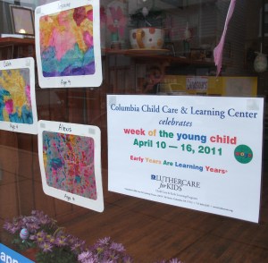 We want to recognize the folks at the Daily Grind, 438 Locust Street, Columbia, for brightening the town with their wonderful and topical window displays. Take a break and stop by to see the special treatment now on exhibit … the recognition of the Week of the Young Child.