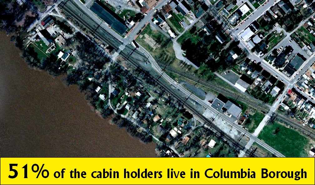 The list of cabin holders is public domain information, but for the moment, let’s just look at where they live. Just over half live in Columbia Borough; the remaining have addresses in other places.