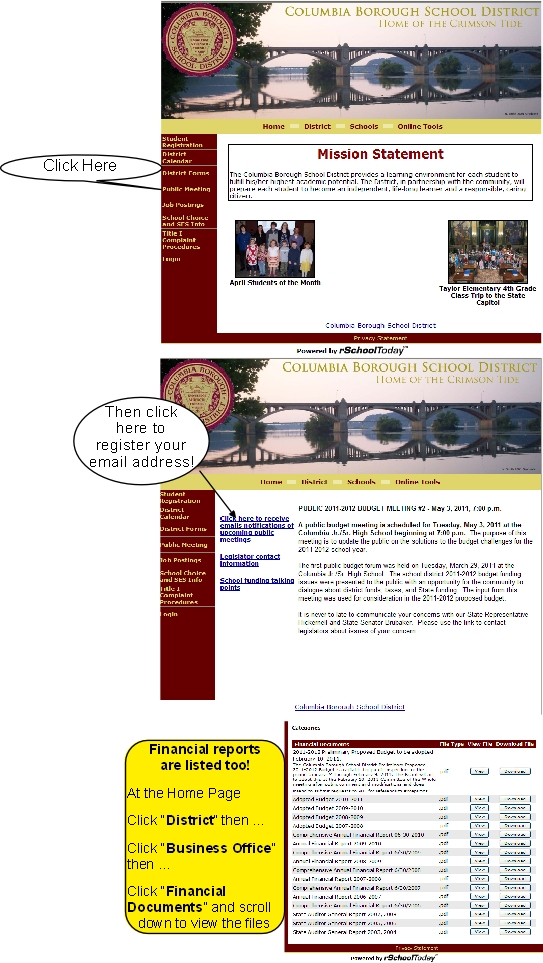 • He announced that the District is actively seeking citizen input to become members of citizen committees and study groups  and asked that citizens go to the School’s Website and sign up to receive informational emails. See the graphic below to find how to sign up.
