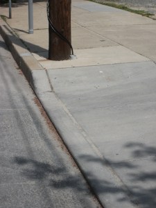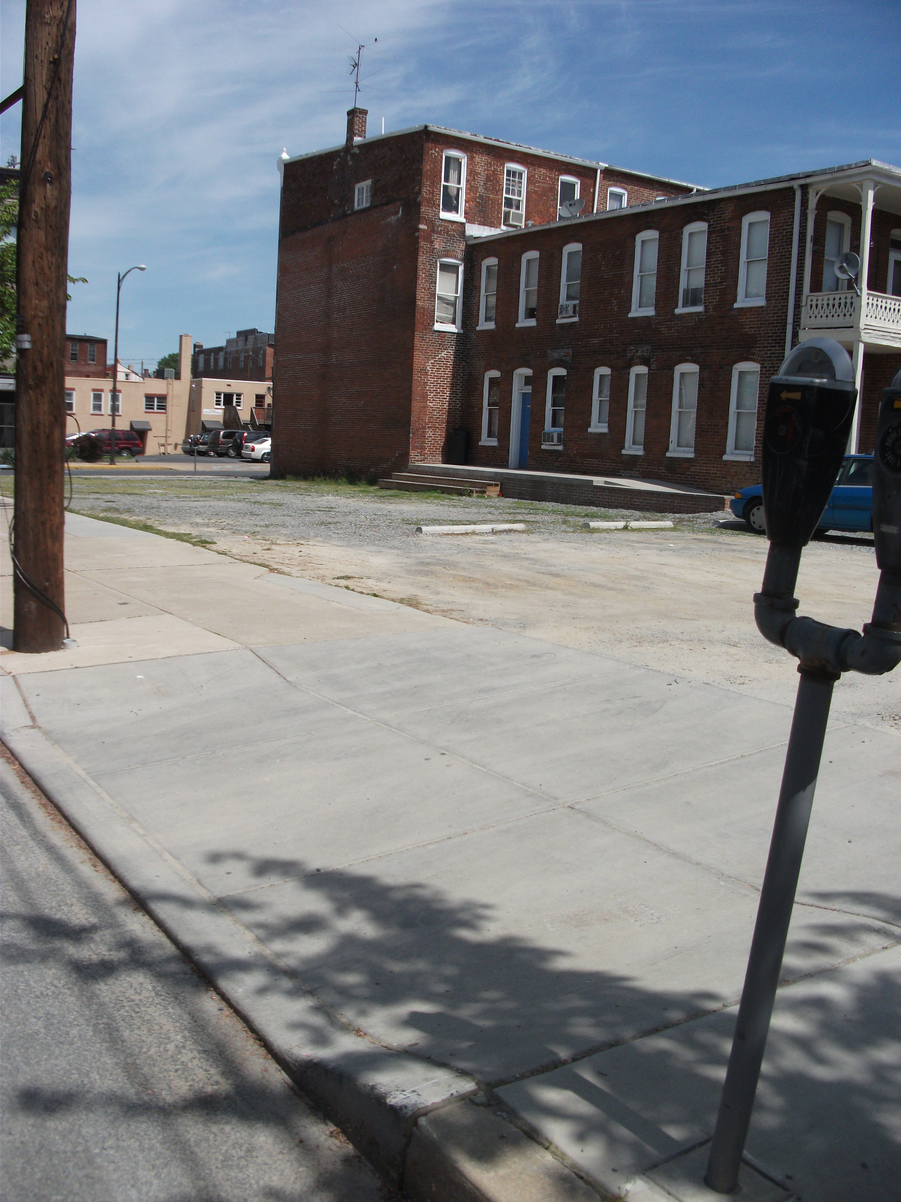 Here is the access cut in the curb to the parking lot. Council voted to restore the curb to a curb; that means the meter will be operating again and generating revenue.