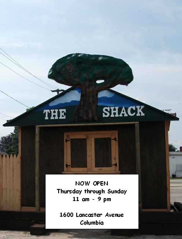 Also, The Shack is now open for business at 1600 Lancaster Avenue, Columbia! Owner, Mitchell Kinnard, invites you to stop in to say hello!