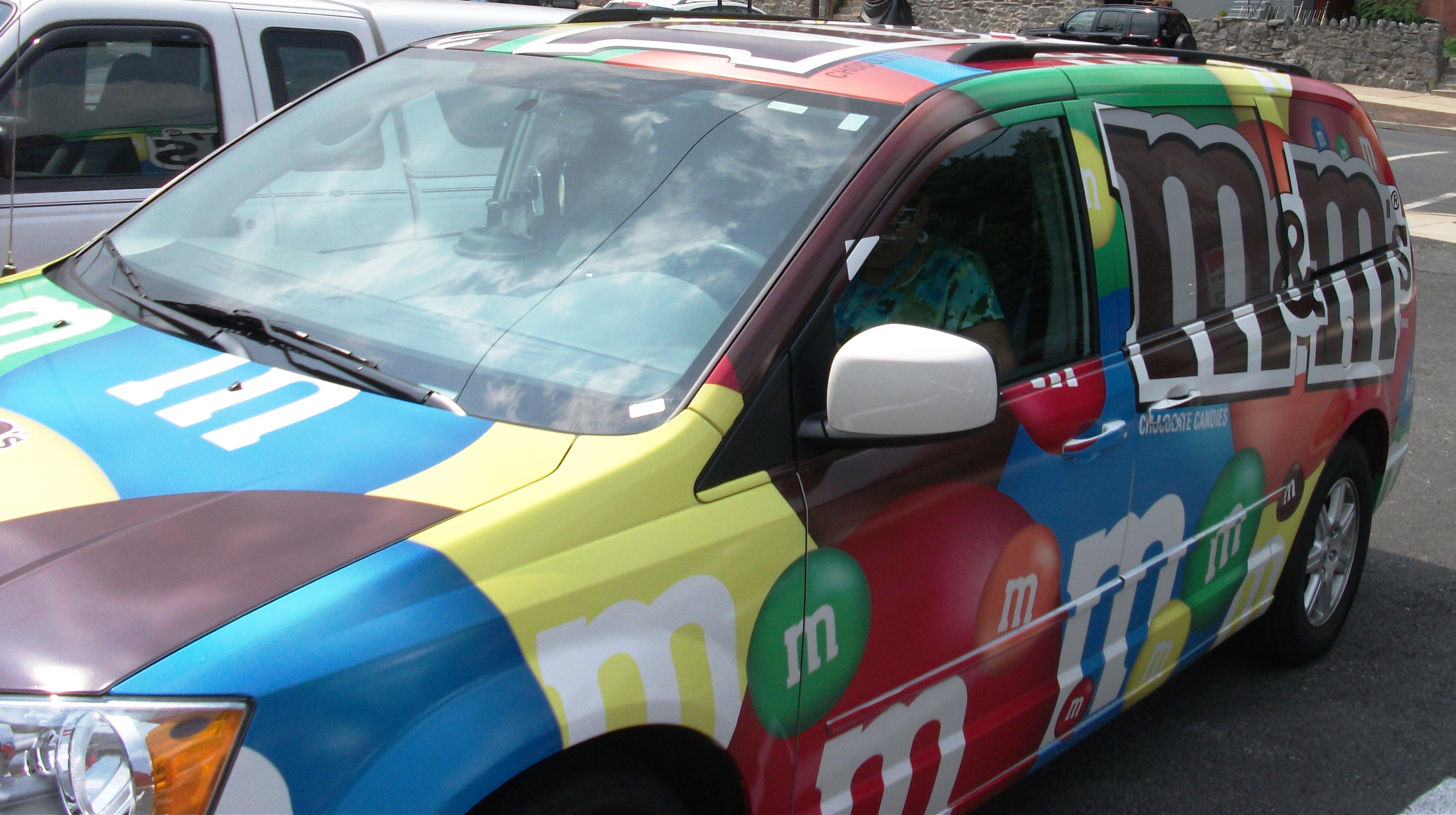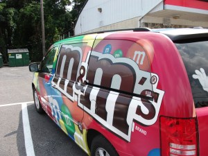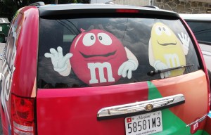 We snapped these photos of the “M&M mobile” … while talking with the mobile driver, who happens to be a sales representative for the M&M Company, she volunteered that this vehicle is the only one in the country like it. And just think, we had it in town today!!!