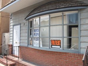 These empty properties on just one side of the 400 block of Locust Street offer prime retail potential. The Morning Dove is gone; do not know whether a new tenant is in the wings or not. Today, it’s empty.