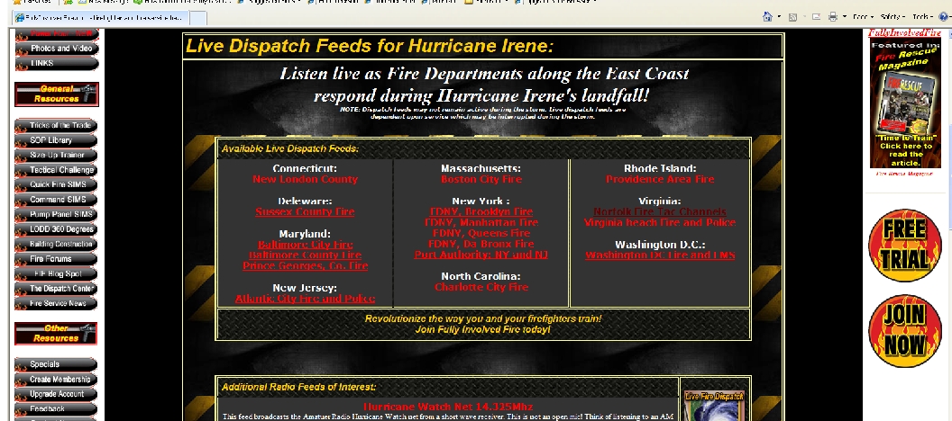 This weekend though, he’s bringing something unique to the site. You can listen to the live radio communications of a number of fire departments along the predicted path of Hurricane Irene. Click here to go to the site.