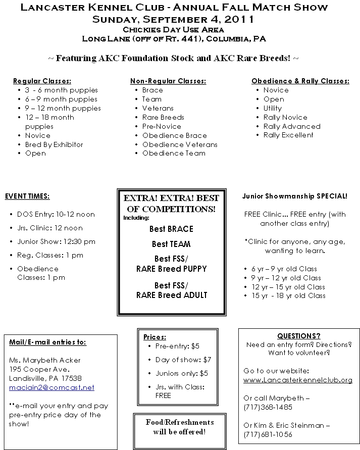 August 30, 2011August 30, 2011 17512 Columbia Come to the LKC dog show, Sunday, September 4 Share this: Click to share on Facebook (Opens in new window) Facebook Click to share on X (Opens in new window) X Like Loading... Related