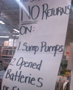At a Home Depot in Brooklyn on Monday, a handwritten sign warned there would be “NO Returns” on sump pumps, opened batteries or flashlights. Both Home Depot and rival Lowe’s say on their websites that customers can return most items within 90 days of purchase. But Karen Cobb, a spokeswoman for Lowe’s, said the store hadn’t seen a rash of returns Monday.