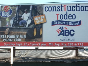 And this billboard advertises something that’s different and it may spark some ideas! The Associated Builders and Contractors, Inc. Keystone Chapter’s “Construction Rodeo” is slated for Sunday, September 25.