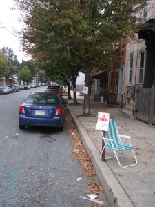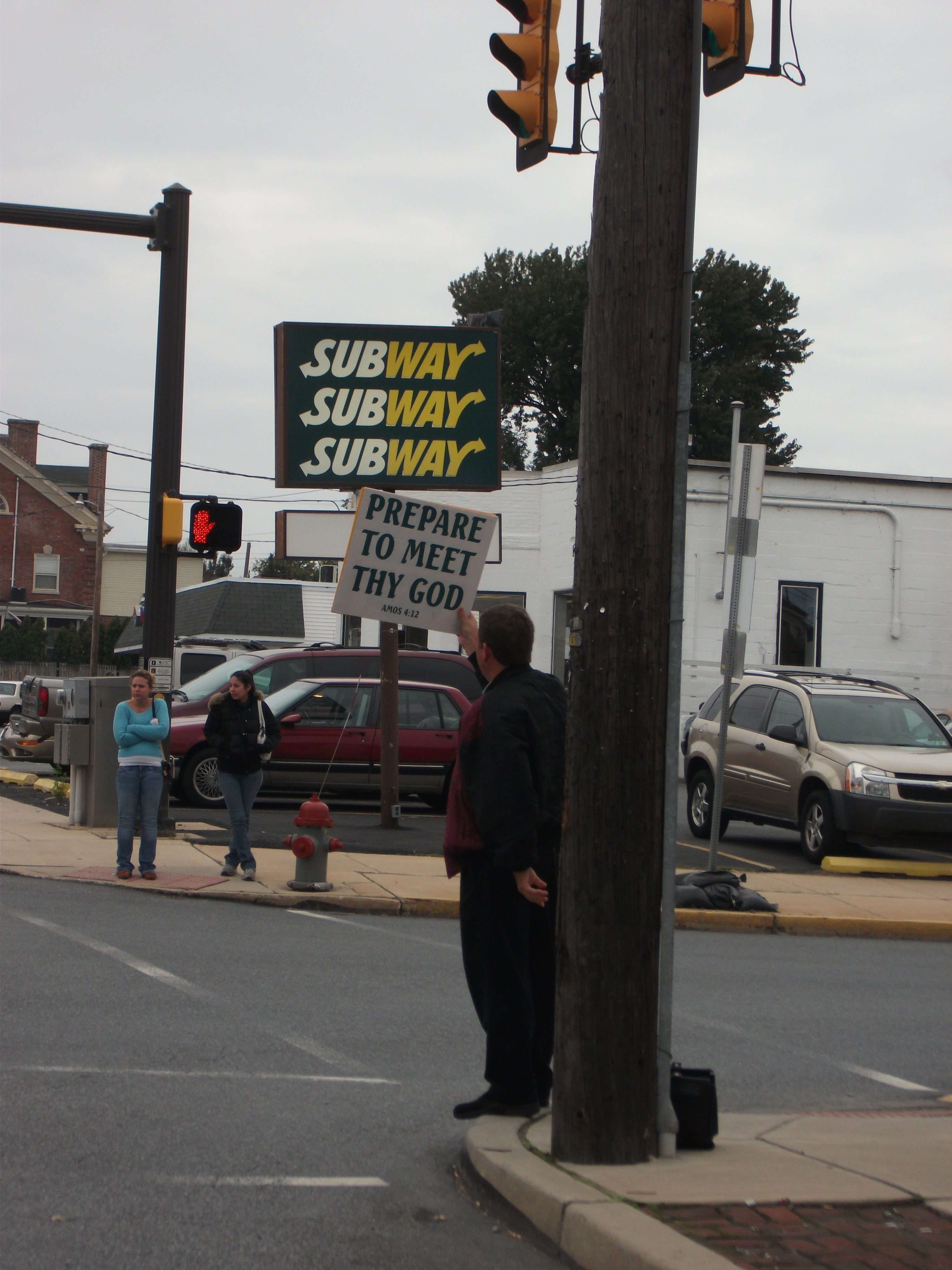 We saw cars actually stop, smile and wave for pedestrians at crosswalks at Third and Walnut Streets, but we saw this looking towards the river.