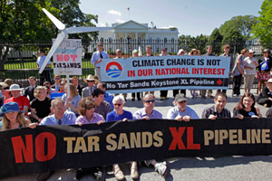 Environmental activists gather outside the White House on Aug. 22, 2011, as they continue a civil disobedience campaign against a proposed oil pipeline from Canada to Texas. (J. Scott Applewhite/AP Photo)