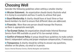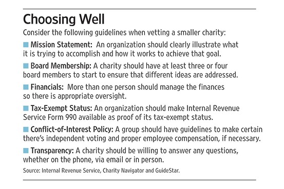 Scores of Sunday newspapers across the country publish “The Wall Street Journal Sunday” pages. These pages carry interesting articles for people who want more insight or research on investing, retiring, saving and more. This week’s pages featured a main article entitled, “Dig Deeper When Checking Out Smaller Charities.”