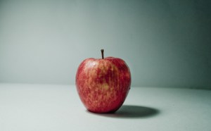 We’ve co-evolved with the apple so that we find it tasty. It’s tasty because there are a load of chemicals in the apple that fit into things on our tongue that fire neurons to our brain in a pattern that the brain interprets as “tasty”.