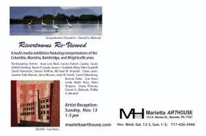 Sunday, Nov. 13, 1-5 Everyone is invited to come out and meet the artists. Awards will be presented at 2:00. Juror: Kim Bannister, well known regional artist, teacher and Curator of Exhibits at the Rose Lehrman Arts Center, Harrisburg Area Community College.