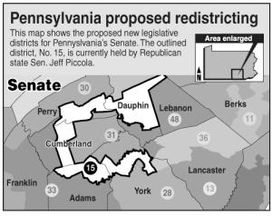 Everyone in the state Capitol is talking about how the district was gerrymandered to remove Harrisburg from Sen. Piccola’s district. He’s not exactly Mr. Popularity there right now, having engineered a state takeover of the financially ailing city. (He was right about that, by the way, but that’s no excuse for making Dover Township residents share their senator with parts of Adams, Perry, Cumberland and Dauphin counties.)