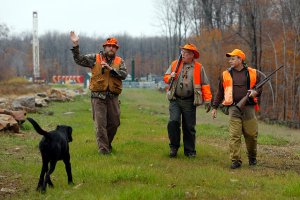 Hunters with drilling rigs in background – Ruth Fremson/The New York Times