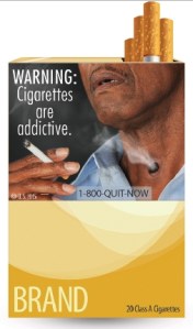 “The Tobacco Control Act made three changes to cigarette warnings. First, existing warnings on cigarette packages (which have been required since 1966) must be replaced with nine new specified verbal warnings (see FDA-Mandated Warnings for Cigarette Packages), one of which must appear on every package. Second, nine new graphic images must be paired with the textual warnings on a rotating basis; the FDA selected images that it expects to have the greatest anti-smoking effect. Finally, companies must move the warnings from the side of the package and devote at least the top 50% of both the front and back panels to the government-mandated messages.