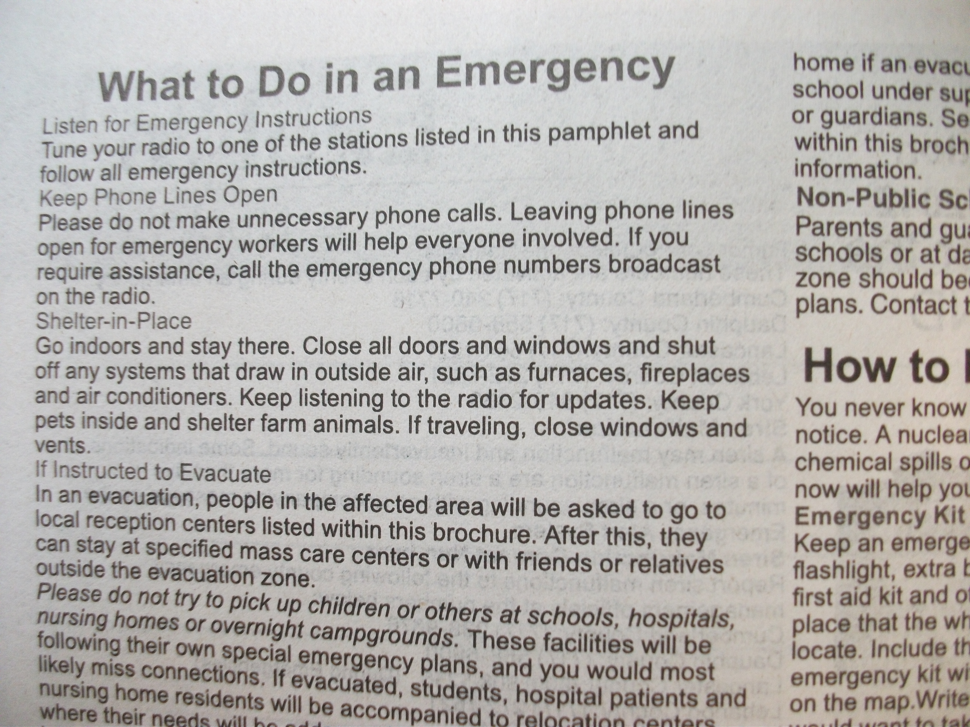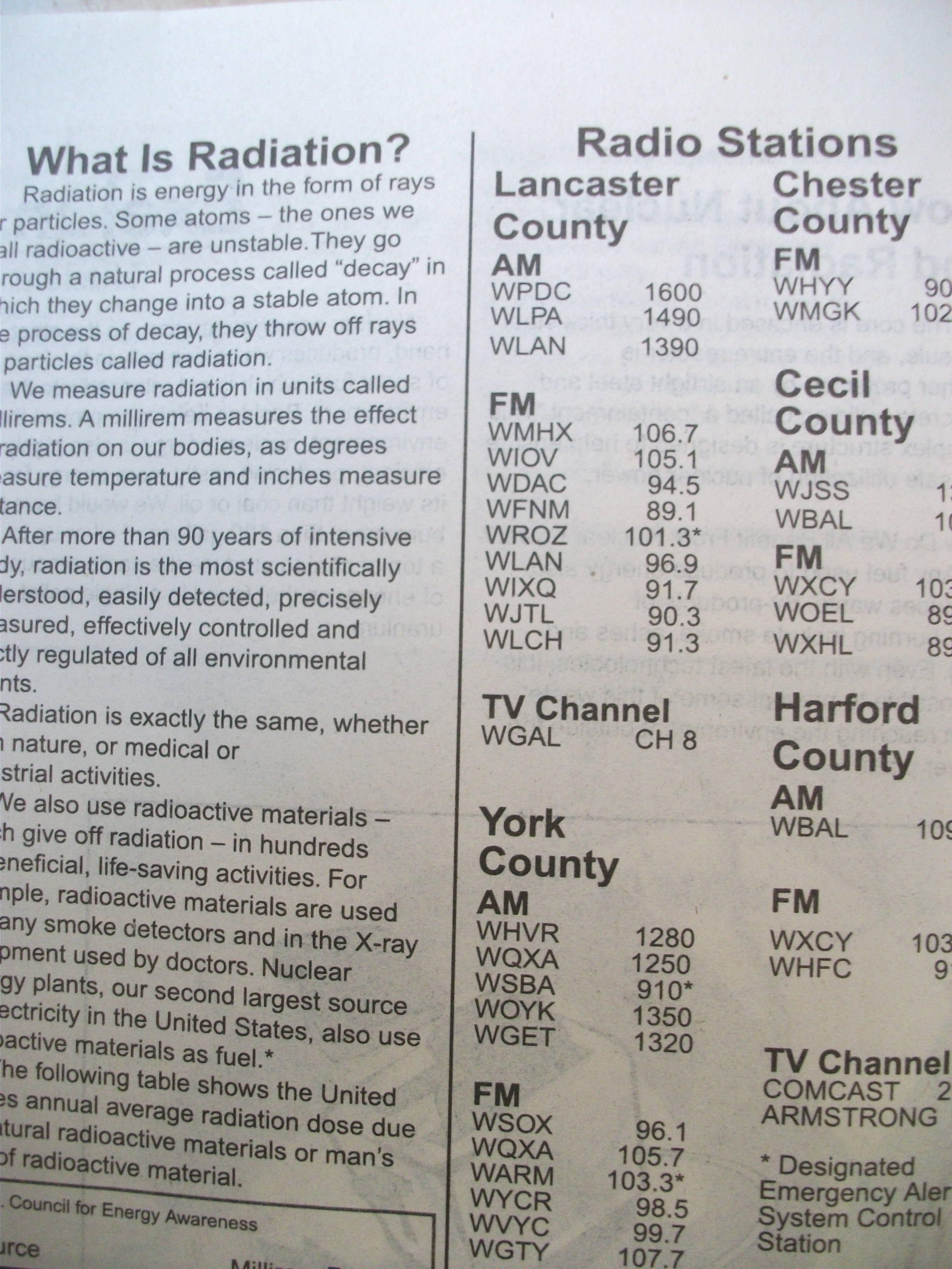 We found one really good resource for information about what to do in case of a nuclear incident at Three Mile Island. What we could not find were listings for people in the “traditional white pages.” The white pages include only business listings. Most likely, the phone directory has discovered that people are turning away from the phone in the home to the phone in the pocket or the bag. Mobile telephone use has skyrocketed across the globe; in the US today, more than 327 million mobile telephone numbers are in use. (NOTE: The US ranks third in users behind China and India according to this wikipedia article.]