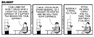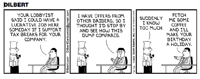Ironically, this comic strip appeared in the Lancaster Intelligencer Journal/New Era on Monday, too. It is funny, but not in a “ha ha” way; it’s “funny” in a sick, perverted way. That we can openly joke about the illicit, corporately-owned political “public servants” reaching out for more money to support their ever-growing largess accumulated at the public trough is not funny. It is repulsive, vile, disgusting and just plain wrong.Now is the time to take away that “trough.” Elected “public servant” positions ought not be lucrative life-time careers. Now is the time to insist that elected “public servants” distance themselves from corporate “pocket-stuffing.” Now is the time for citizens to step up and demand accountability from these elected “public servants.”