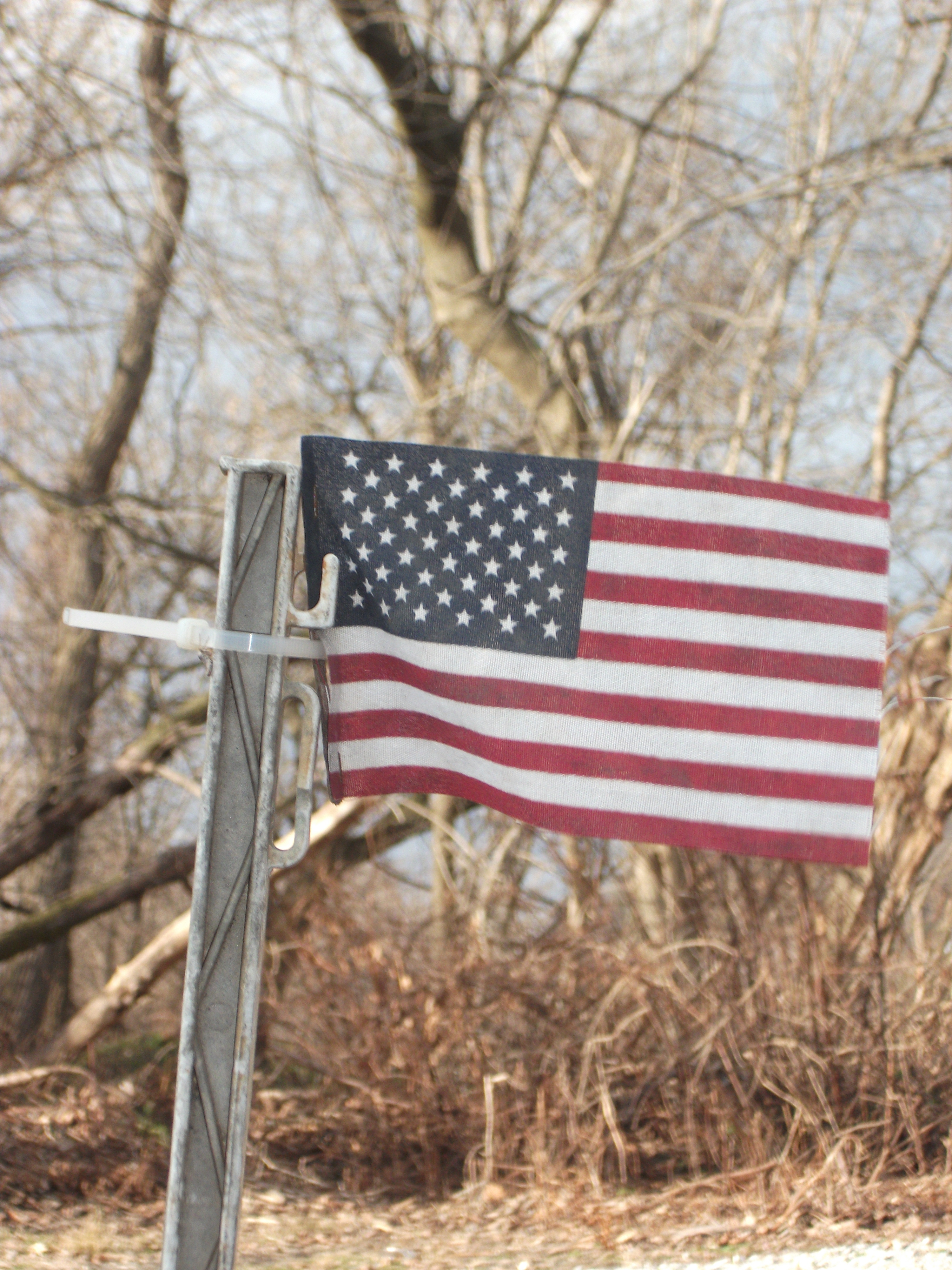 There is one thing that is missing in the park. There is no flagpole and no American flag flying over the River Park. Well, there is one; we found this 3-inch x 5-inch flag flying proudly at the former kayak rental site.