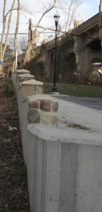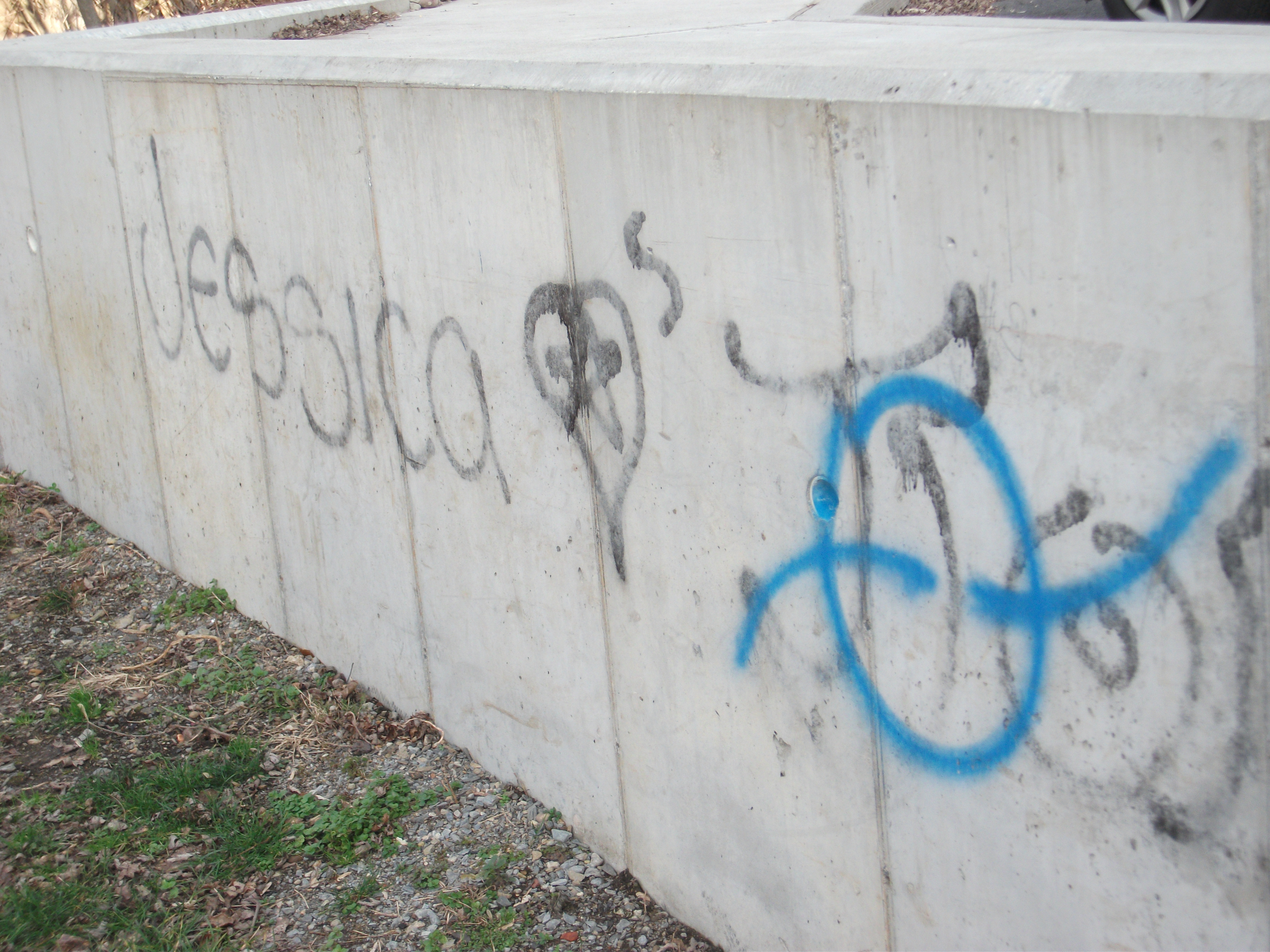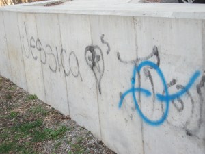It’s pretty certain the spray-can vandal was not a participant in the building of this handsome “step” wall at the northern part of the park. Maybe Jessica’s not proud to have you tag the wall with her name?