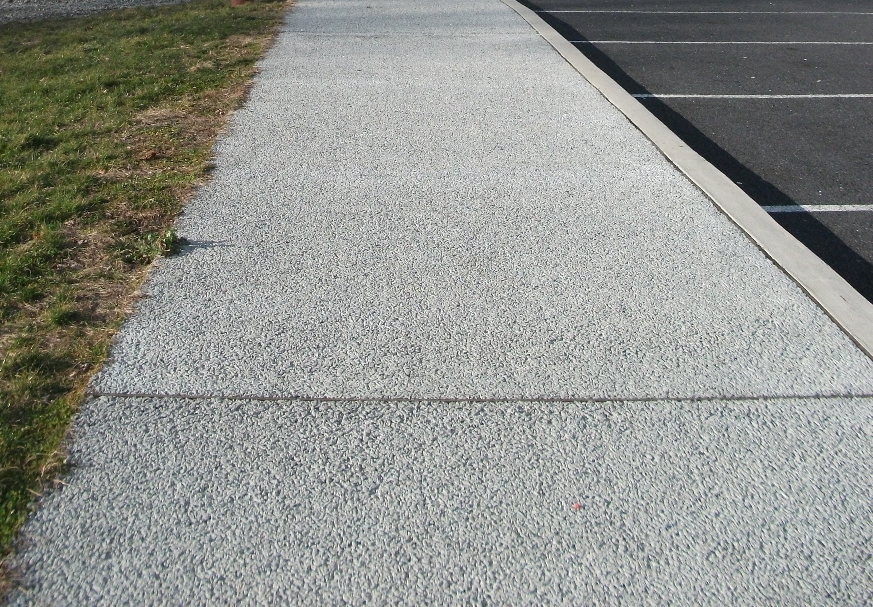 New textured “pervious concrete” sidewalk is evident at some spots.