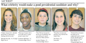 - Columbia High School students featured in today’s Lancaster Intelligencer Journal/New Era‘s FreeStyle page interview section, “SAY WHAT?”