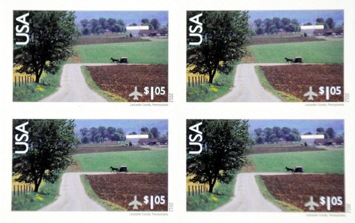 The ‘Scenic American Landscape’ series stamp shows an Amish buggy driving on a country road near plowed fields. The self-adhesive first-class stamp covers the 1-ounce letter price for international mail ($1.05 international rate stamp) to countries other than Mexico and Canada.” - … and who is surprised by this? “Empty praise said to make students less likely to excel” – Winston-Salem Journal