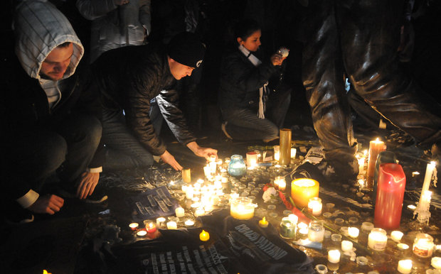 (Photo: People place candles around the Joe Paterno statue on Saturday, January 21, 2012. A crowd gathered Saturday after news broke that Paterno’s health was in decline. Joshua Sykes, Centre Daily Times)