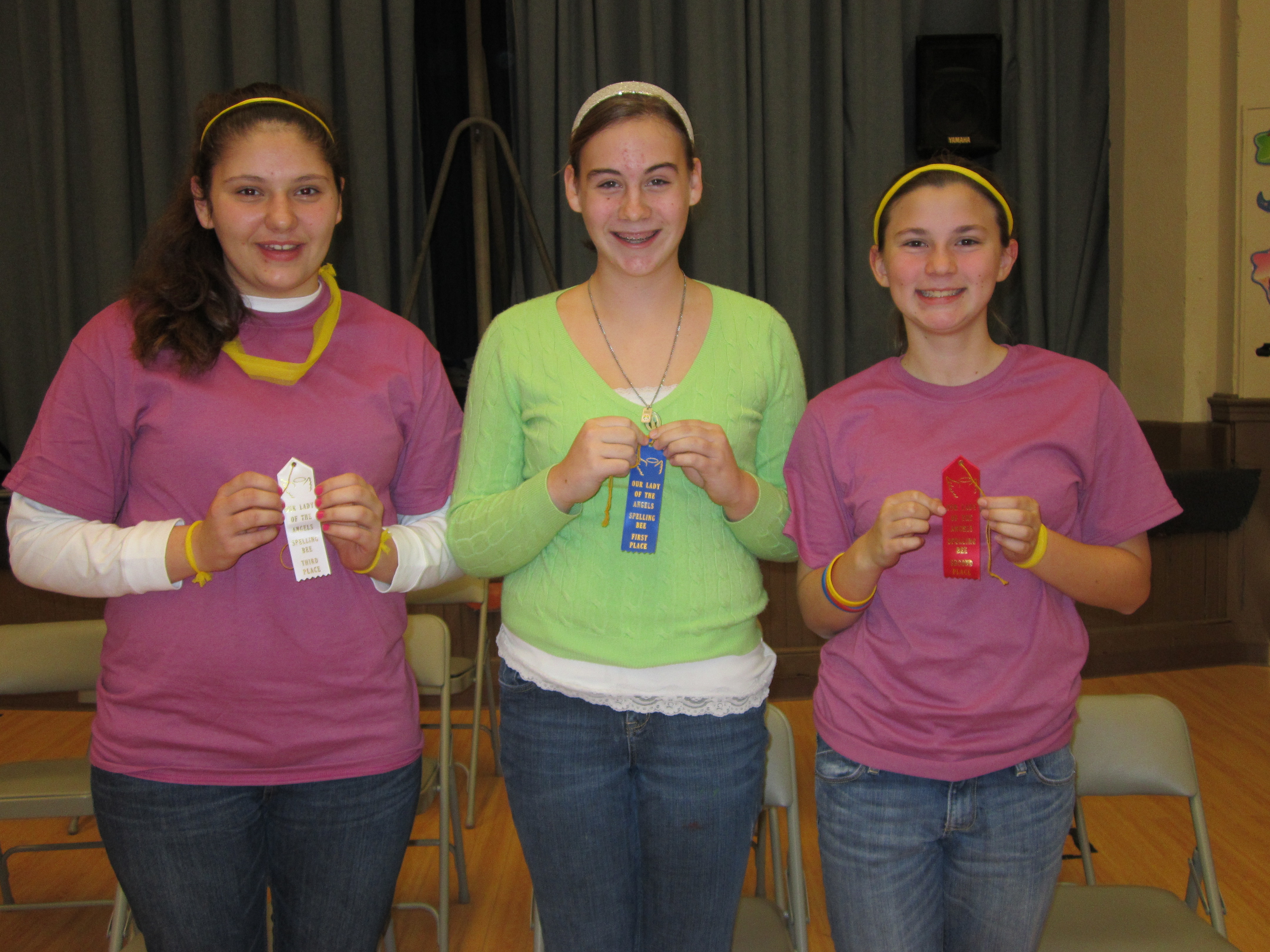 Last Wednesday, the annual Our Lady of the Angels (OLA) school conducted its Spelling Bee and three winners emerged from the sixth, seventh and eighth grades from the tough field of qualifiers. Each of the classrooms have spell-offs within the class and the top winners are selected to participate in the actual bee.
