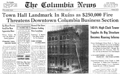 As the fire burned the Opera House, it seemed to take the past greatness of Columbia with it.” (SOURCE: Columbia Borough Website)