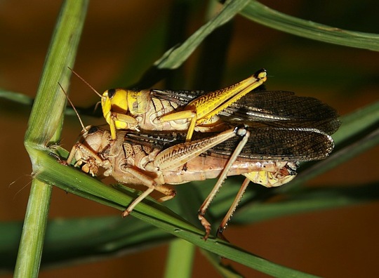 Further, using both transect- and quadrat-based census techniques, I found copulating (as opposed to single) locusts to be roughly ten-times less abundant in the broader locust population than expected, based on their incidence as wasp prey.