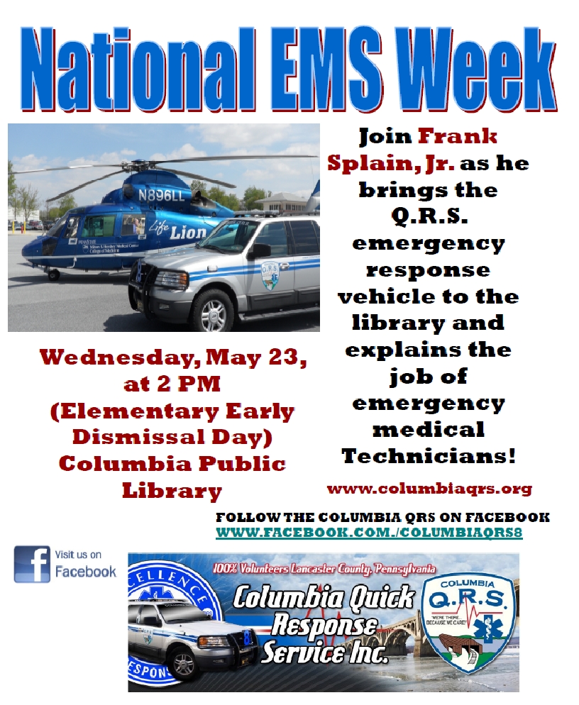 This presentation will be a recognition of National EMS Week; Wednesday, May 23 is Emergency Medical Services for Children (EMSC) Day.