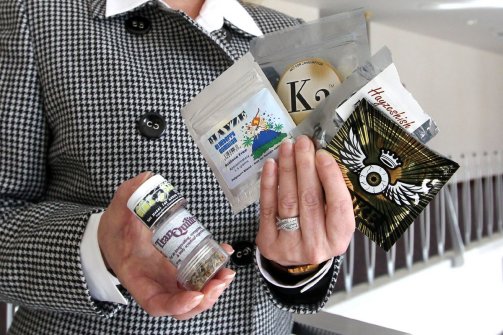 Diane Machen, a criminalist with the Washoe County Sheriff’s Office, holds samples of bath salts and synthetic cannabinoids that are examples of designer drugs targeted by lawmakers. Machen testified on two proposals that would help define and outlaw the synthetic drugs at the Legislature in Carson City, Nev. on Tuesday, March 15, 2011. (Cathleen Allison / AP Photo)