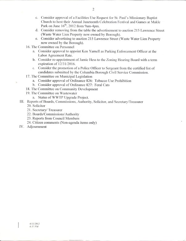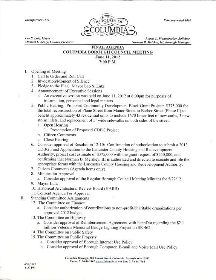 Last night, about 20 people endured the June Borough Council Meeting that was convened by council president, Michael Beury at 7:00 pm and adjourned three and one-half hours later. Citizens, representatives of the Historic Columbia Market House, current and former Market House stand holders endured the lengthy and often emotionally charged meeting which included theater-like, “on-again; off-again” gavel wrapping by the person with the gavel.
