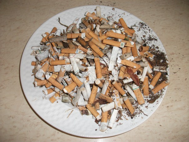 - Fish food! A dinner plate of cigarette butts policed at River Park yesterday. The fish in the river won’t have these to eat.