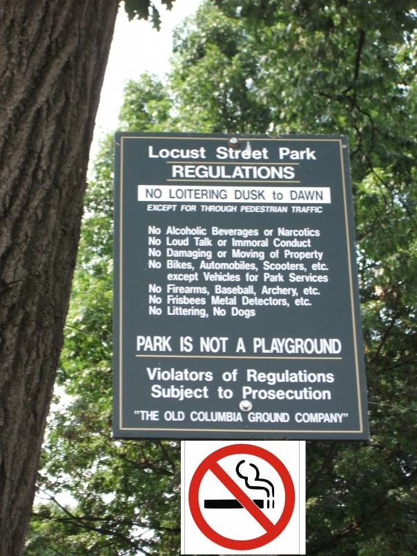 - Here’s a suggested addition that makes sense as another “no” for the Locust Street Park sign (and for all the school properties, Makle Park, Rotary Park and River Park)!
