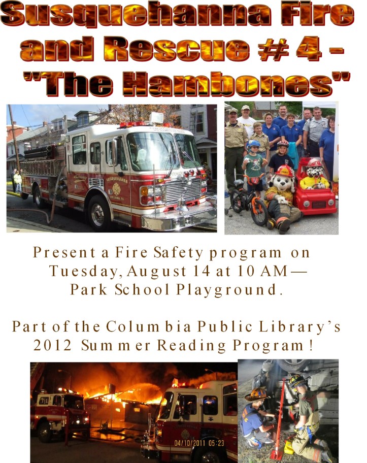 August 12, 2012August 10, 2012 17512 Columbia Fire Safety program on Tuesday, August 14 at 10 AM— Park School Playground Share this: Click to share on Facebook (Opens in new window) Facebook Click to share on X (Opens in new window) X Like Loading... Related