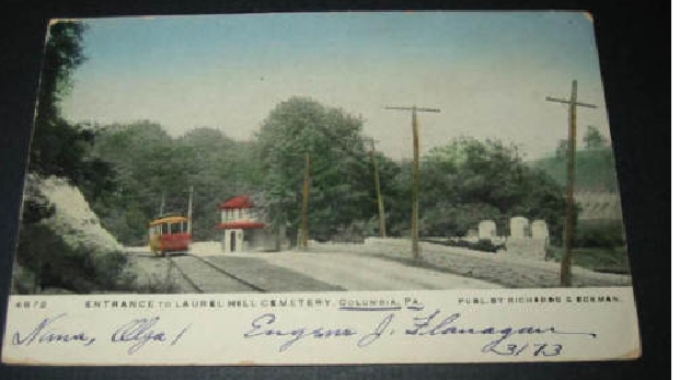 The entrance to the Laurel Hill Cemetery looked different in 1906; this postcard (on sale at e-bay) shows the entrance to Laurel Hill then.