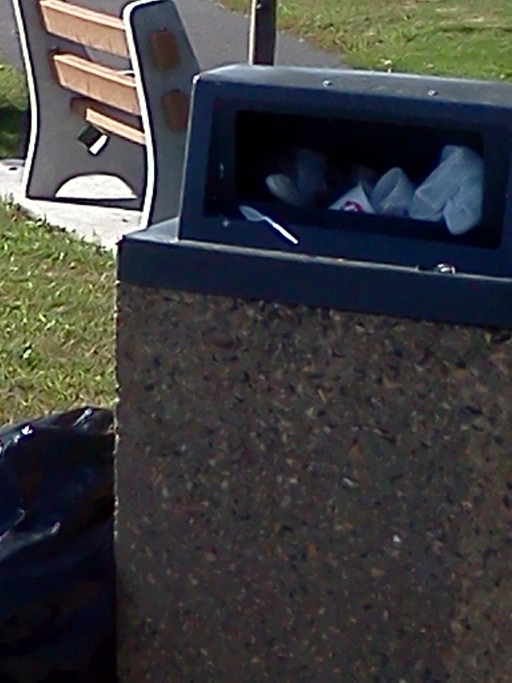 Would it not be great if people would take their trash with them when they see the Park’s trash receptacles are filled? Na-a-h, it’s so much easier to over stuff the receptacles or just leave bags and other trash there rather than accept a little responsiblity.