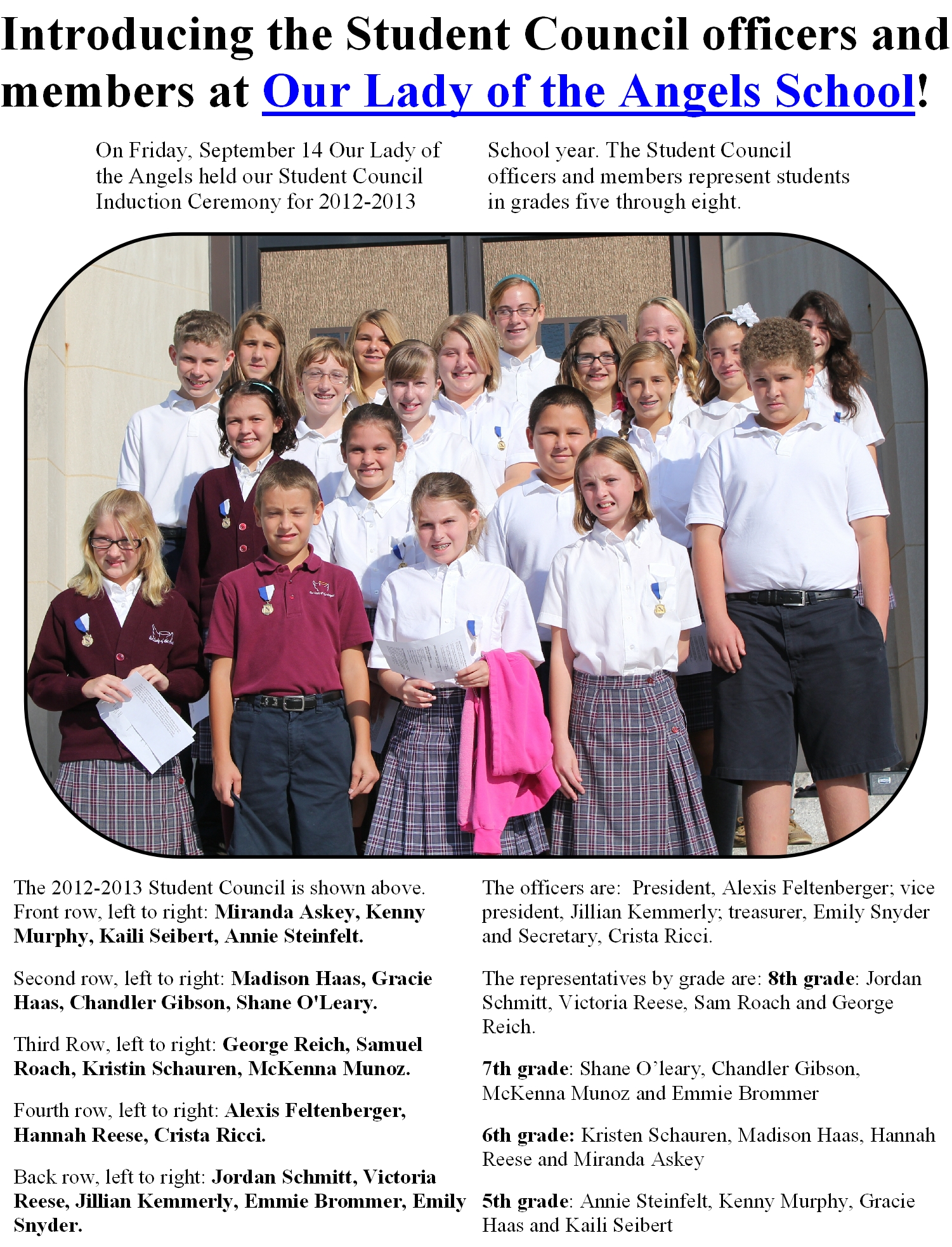 Introducing the Our Lady of the Angels student council – click on the above photo to enlarge it.
