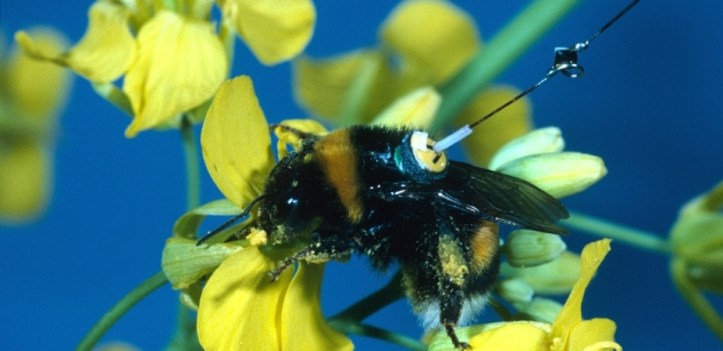 “Tracking insects, especially flying insects, in an outdoor environment has been a huge challenge. Here, the authors caught individual bees that were leaving the hive and attached a small transponder (weighing 0.8mg) and released them.