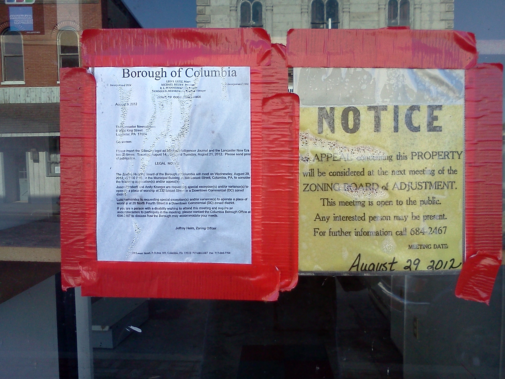 Also noticed the neatness of the posting mounting. Adds a touch of class to Borough Zoning communications with anyone (residents, visitors, tourists) walking by.