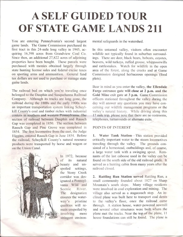 Yesterday was the “one-day-a-year” that people were able to drive the old railway track bed north of Harrisburg. The 17 mile trip took travelers along the Stony Creek trail. Last week Columbia news, views & reviews said this about the trip: “Your one chance: ‘One-day-a-year drive on railroad bed through Stony Creek wilderness has flaming foliage, history, scenic stream and wildlife’ – Lancaster Intelligencer Journal/New Era.” Outdoor writer Ad Crable must have done one heck of a job, because it seemed like every four-wheel-drive vehicle from here to there showed up “to do the trail.”