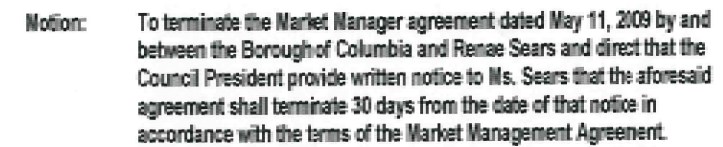 This is extracted from the agenda from the Columbia Borough regularly scheduled Meeting, December 14, 2009.