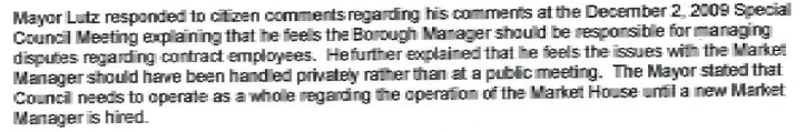 Why have these elected “public servants” asked for transparency in “personnel actions” when they hid behind the claim of “personnel actions” following the termination of the market manager’s agreement in 2009?