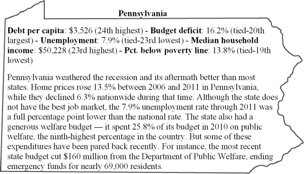“A state with abundant natural resources should have an easier time balancing its budget than one starved for resources. Regional problems or the national decline of certain industries can destroy local economies. The subprime mortgage crisis, for example, disproportionately affected states with strong construction and real estate markets. Such factors can be easily identified and noted as possible causes for a state’s poverty levels, unemployment, or strained coffers.