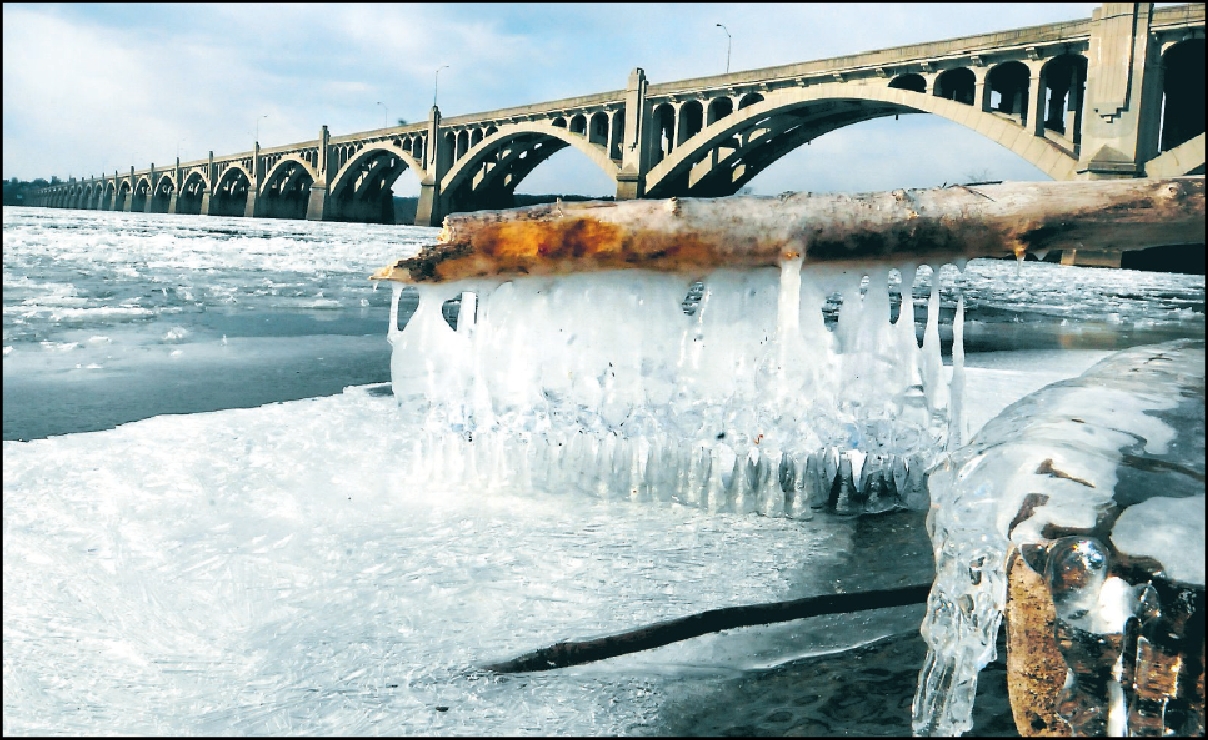 “Ice forms on a stick Wednesday near the edge of the Susquehanna River near the Columbia-Wrightsville bridge.”: Richard Hertzler / Staff – SOURCE: Page one picture in today’s Lancaster Intelligencer Journal/New Era