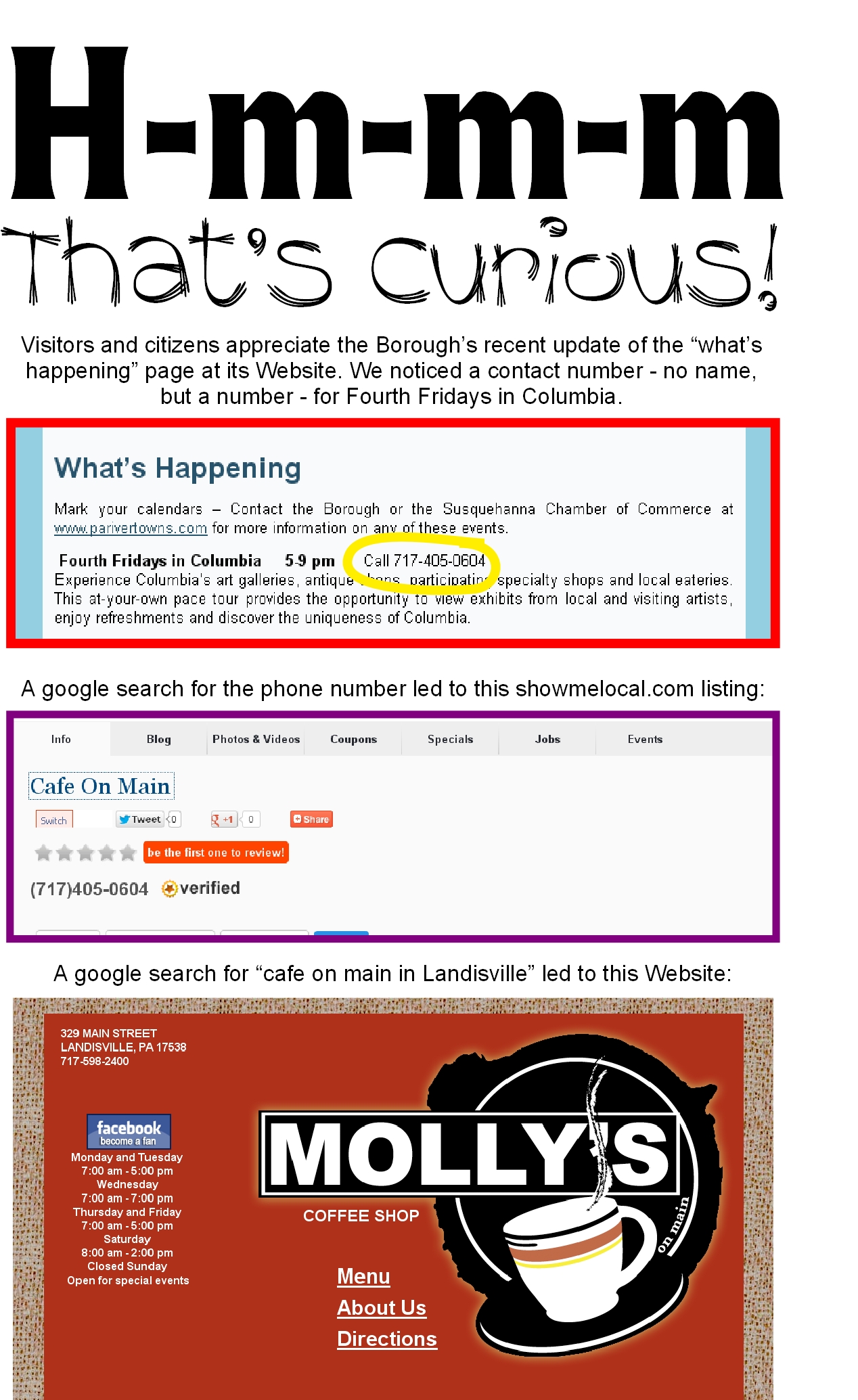 Here’s the response when the call to the number shown at the Borough Website is answered: call to 4th friday number