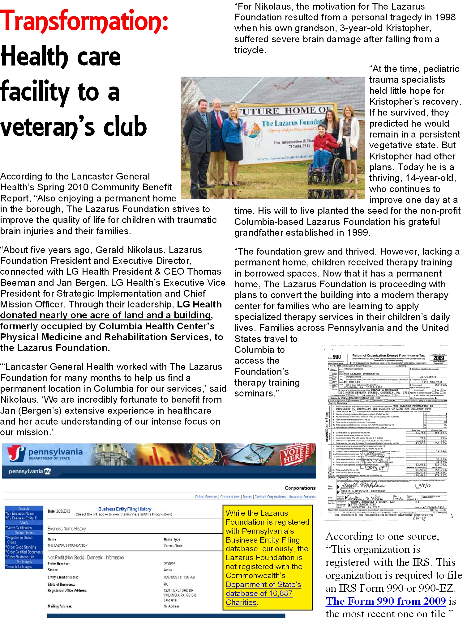 Nobody’s sure why the Lazarus Foundation is turning over space in the building deeded to it from the hospital … to a veterans’ club. And more than a few are scratching their heads about the veterans’ club wanting open their club to sell lottery tickets to the public. Legal advertising that’s been published states the club wants “to operate a membership club and to offer sales of lottery products of the Pennsylvania Lottery to the general public at 250 North Seventh Street.”
