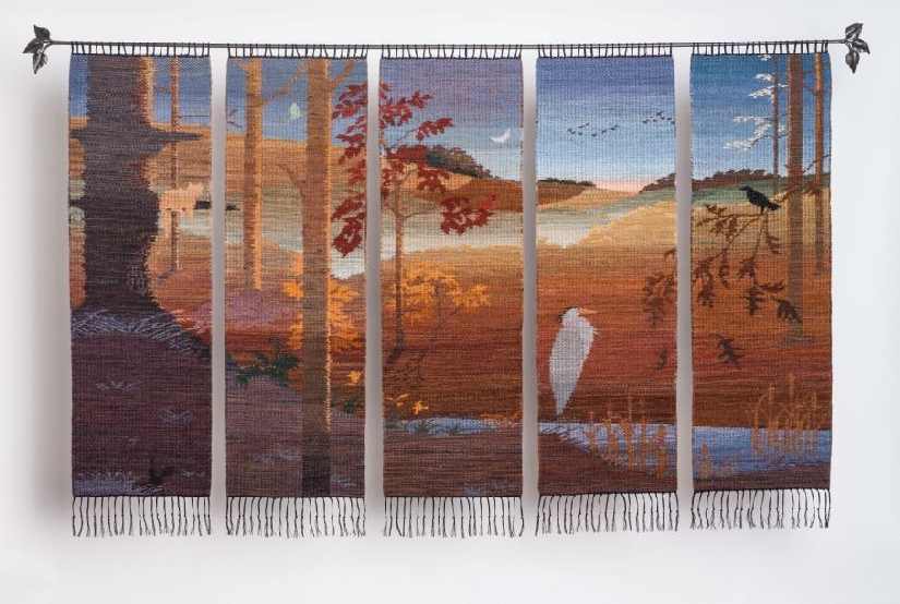 “A Well-Earned Rest” will be on exhibit at Weavings, Ink. This 8’ wide by 5’ high weaving is the original work of artist Phyllis Koster.