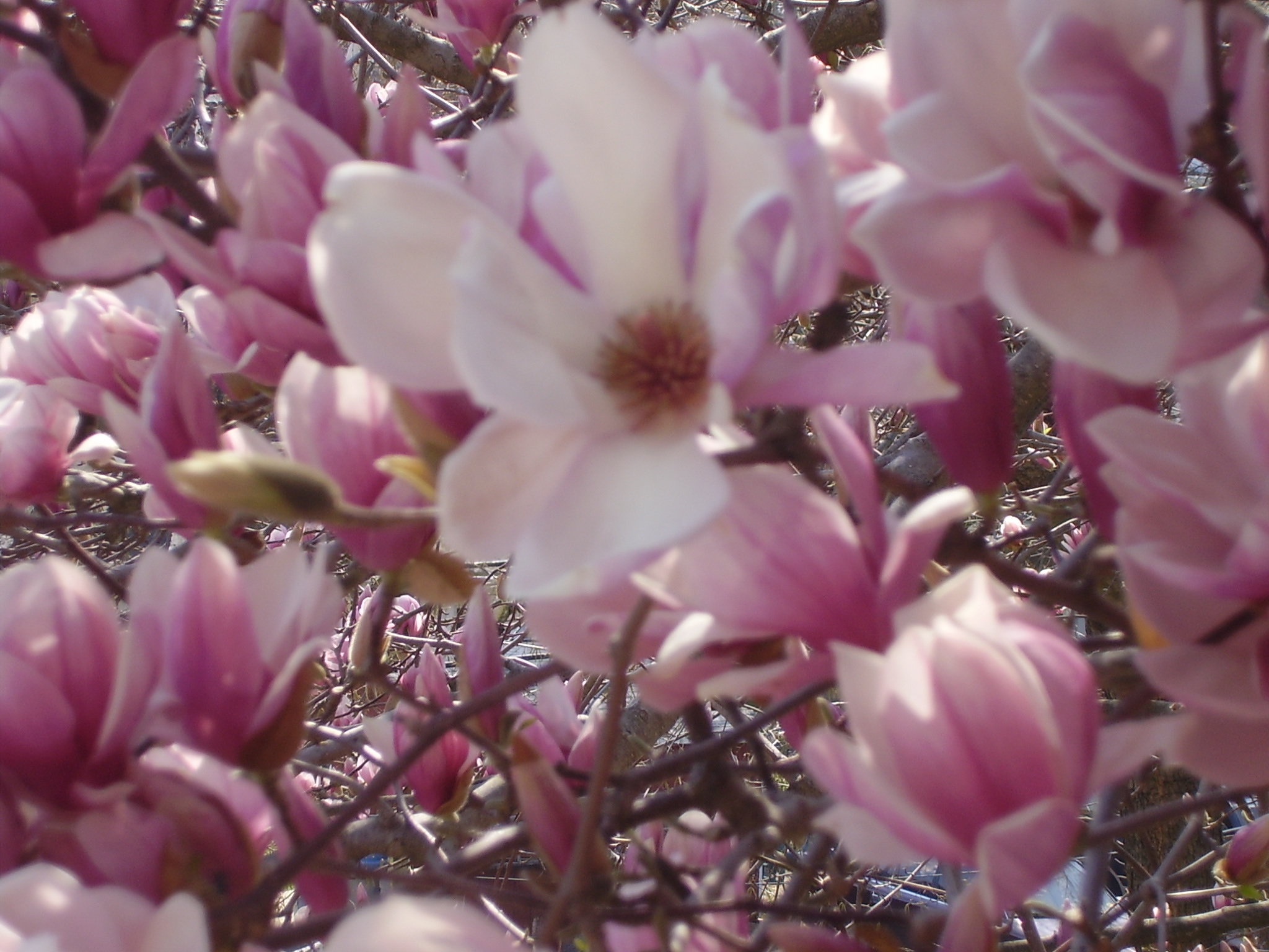 The magnolia has been our indicator of spring. The pink majesty of the tree at least gives us the impression of spring. On April 2, 2007 this was the view of a magnolia.